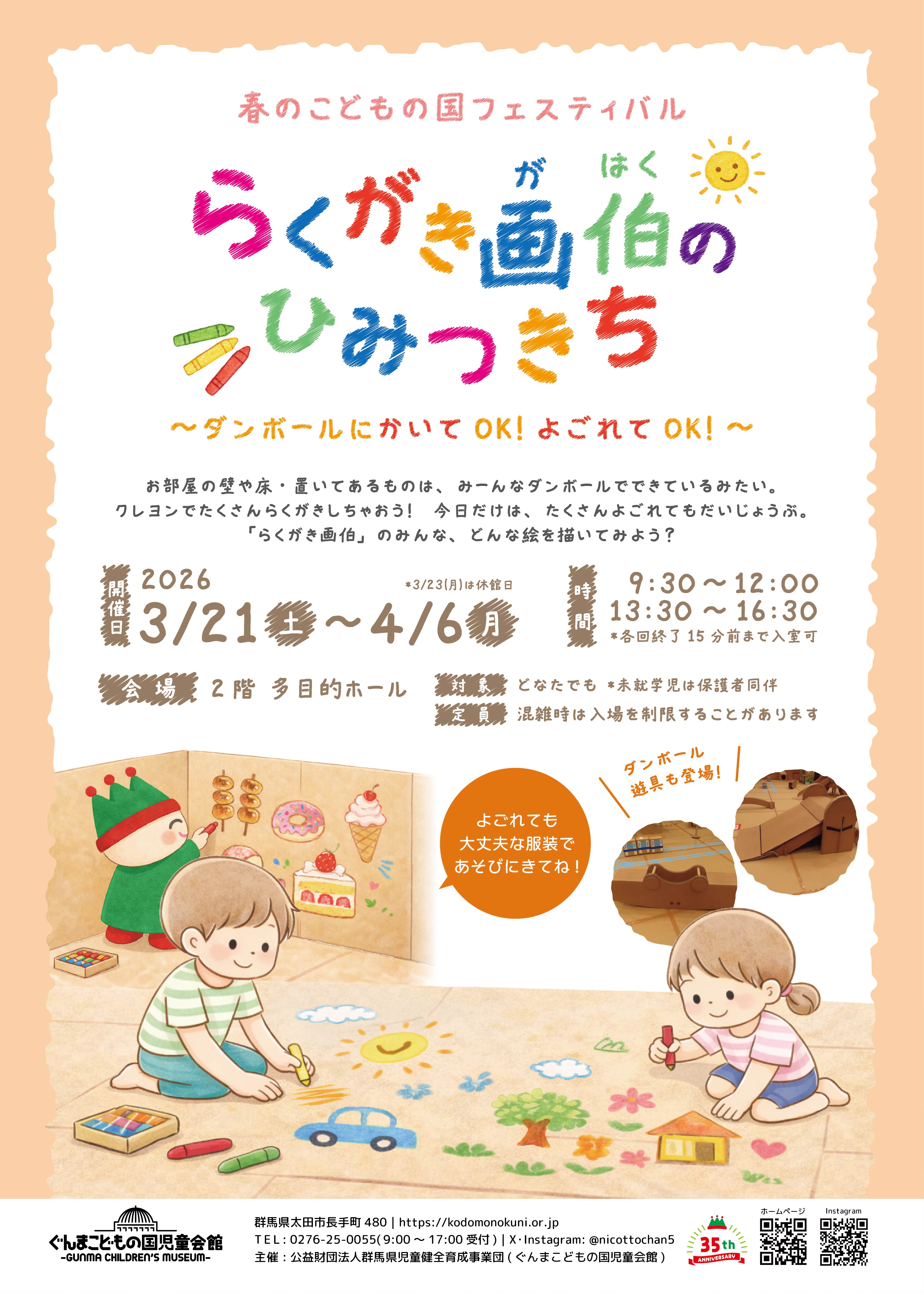 春のこどもの国フェスティバル「らくがき画伯のひみつきち~ダンボールにかいてOK!よごれてOK!~」