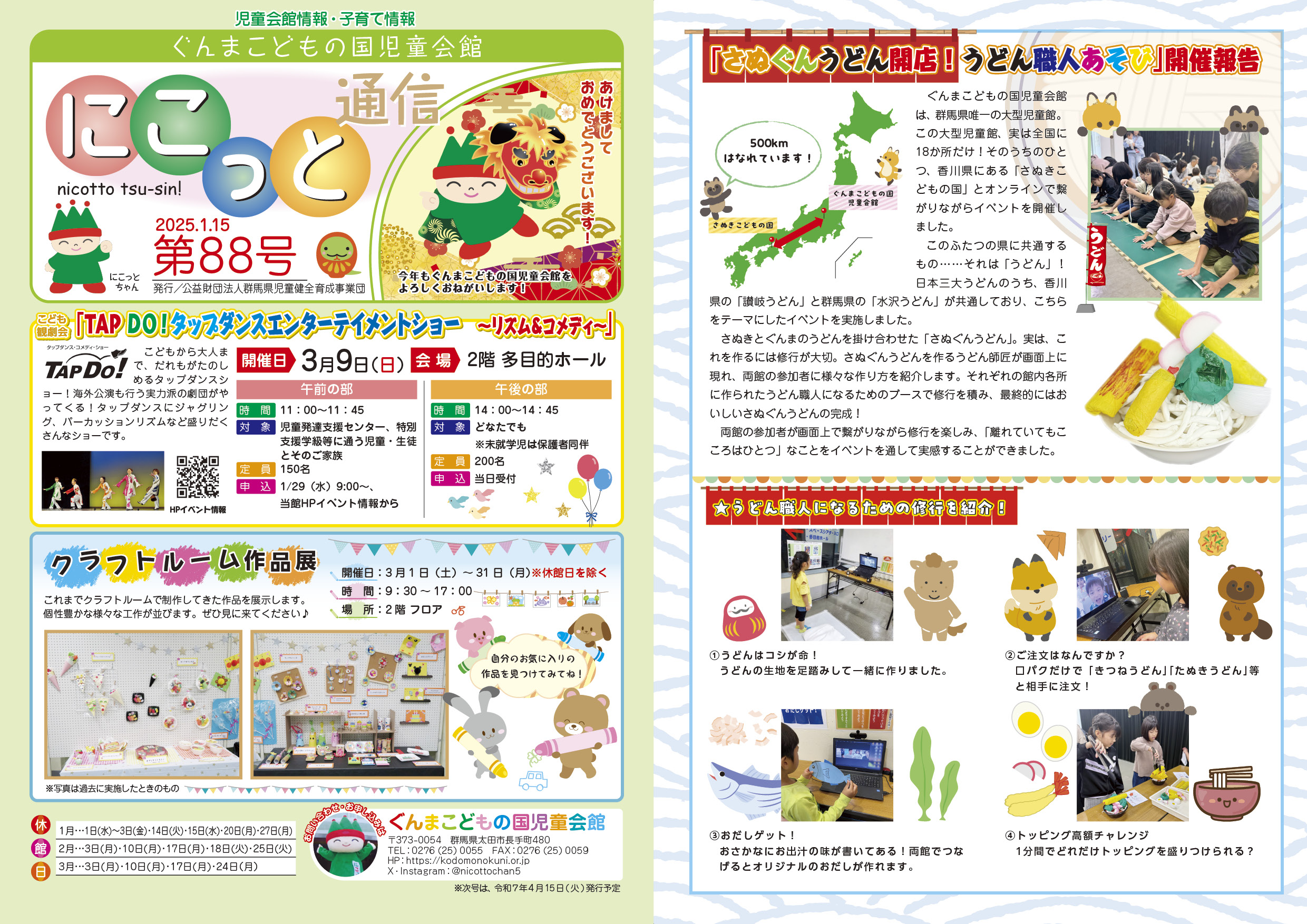 ぐんまこどもの国児童会館開館当初から発行されてきた「児童会館ニュース」創刊号から「にこっと通信」最新号まで、すべてを読むことができます。