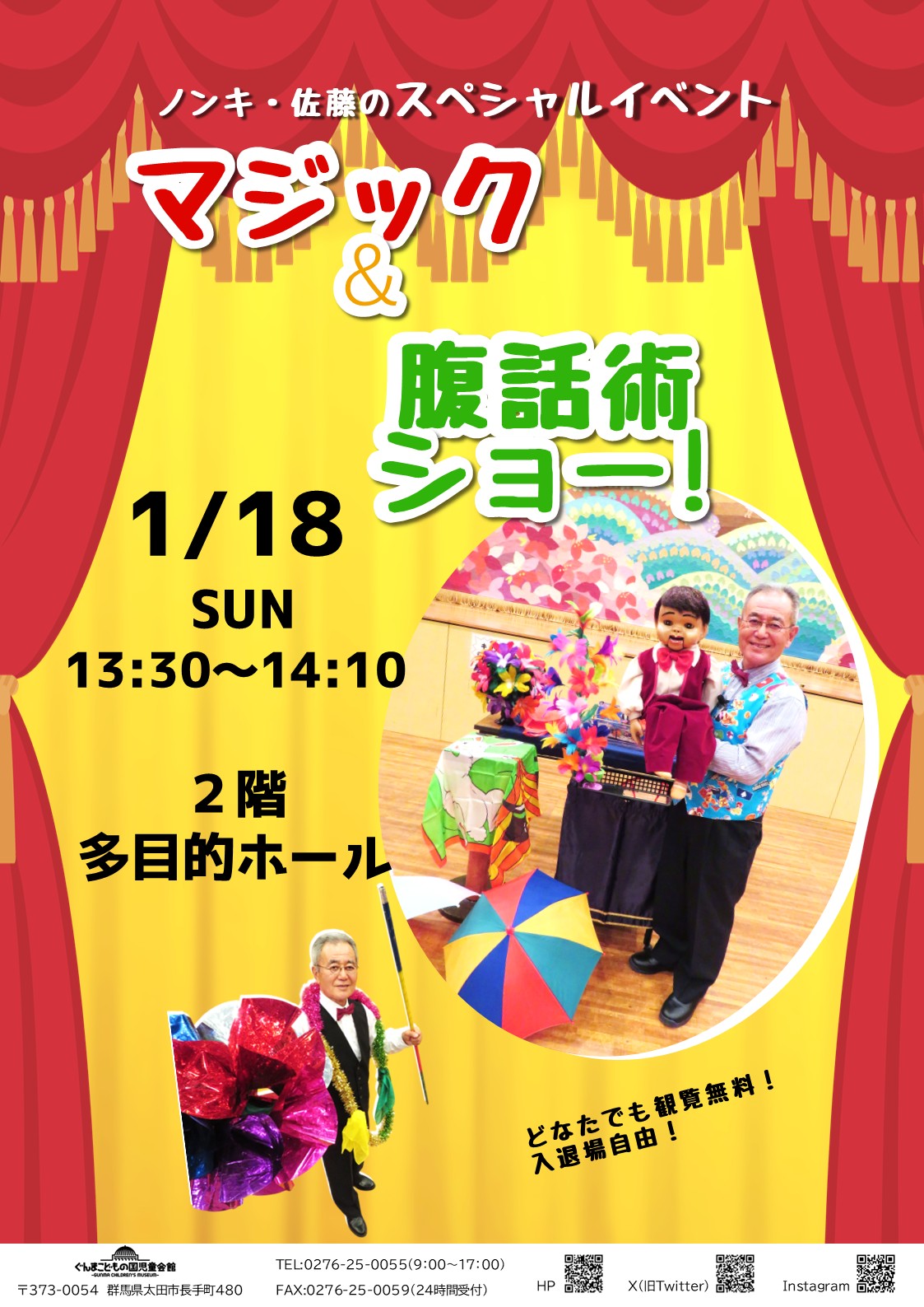 1月18日(日)ノンキ・佐藤のスペシャルイベント~マジック&腹話術ショー!~ -