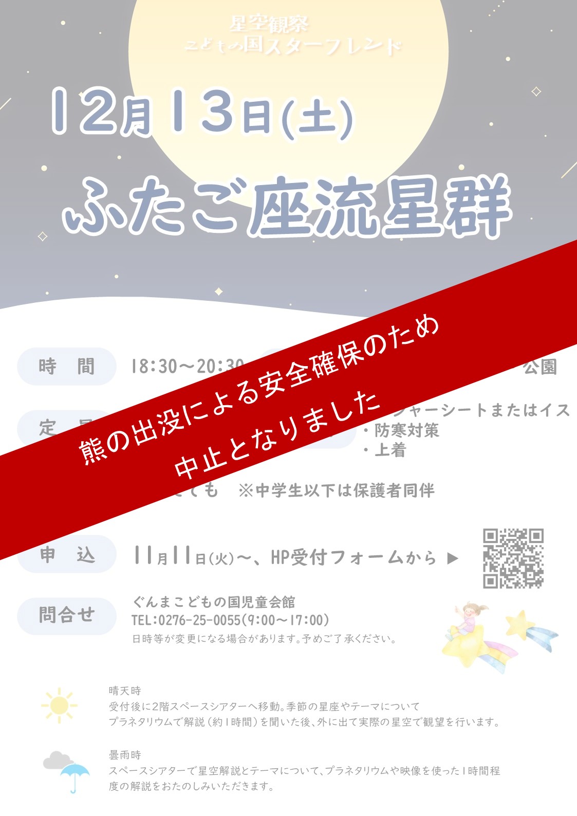 12月13日(土) *中止になりました星空観察 こどもの国スターフレンド -ふたご座流星群- -