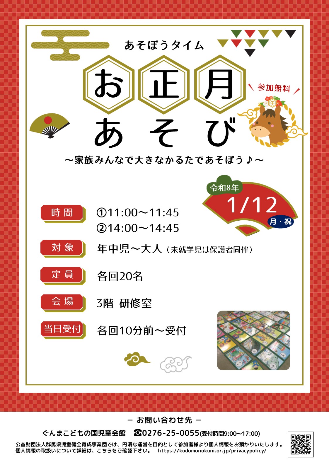 1月12日(月・祝)あそぼうタイム「お正月あそび~家族みんなでおおきなかるたであそぼう♪~」 -