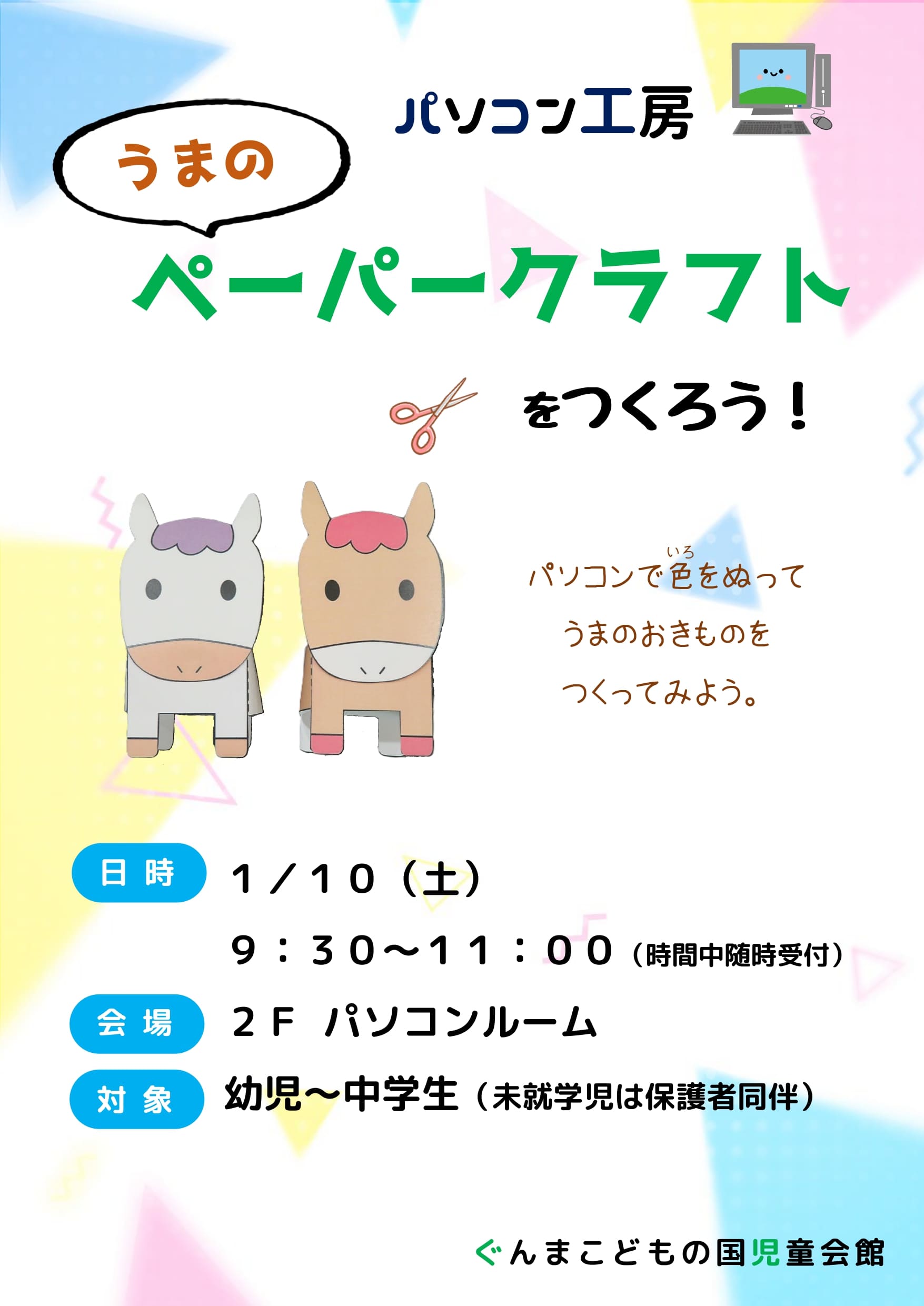 1月10日(土)パソコン工房「うまのペーパークラフトをつくろう!」 -