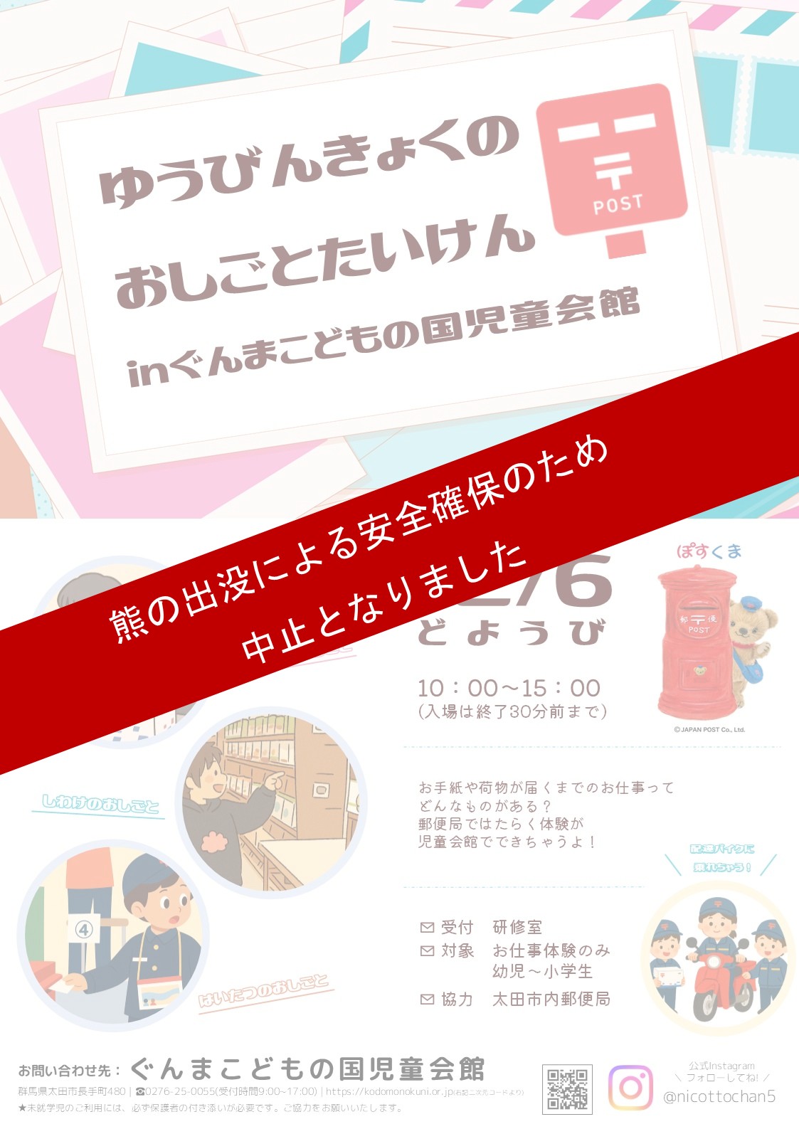 12月6日(土) *中止になりました郵便局連携事業「ゆうびんきょくの〶おしごとたいけん」 -