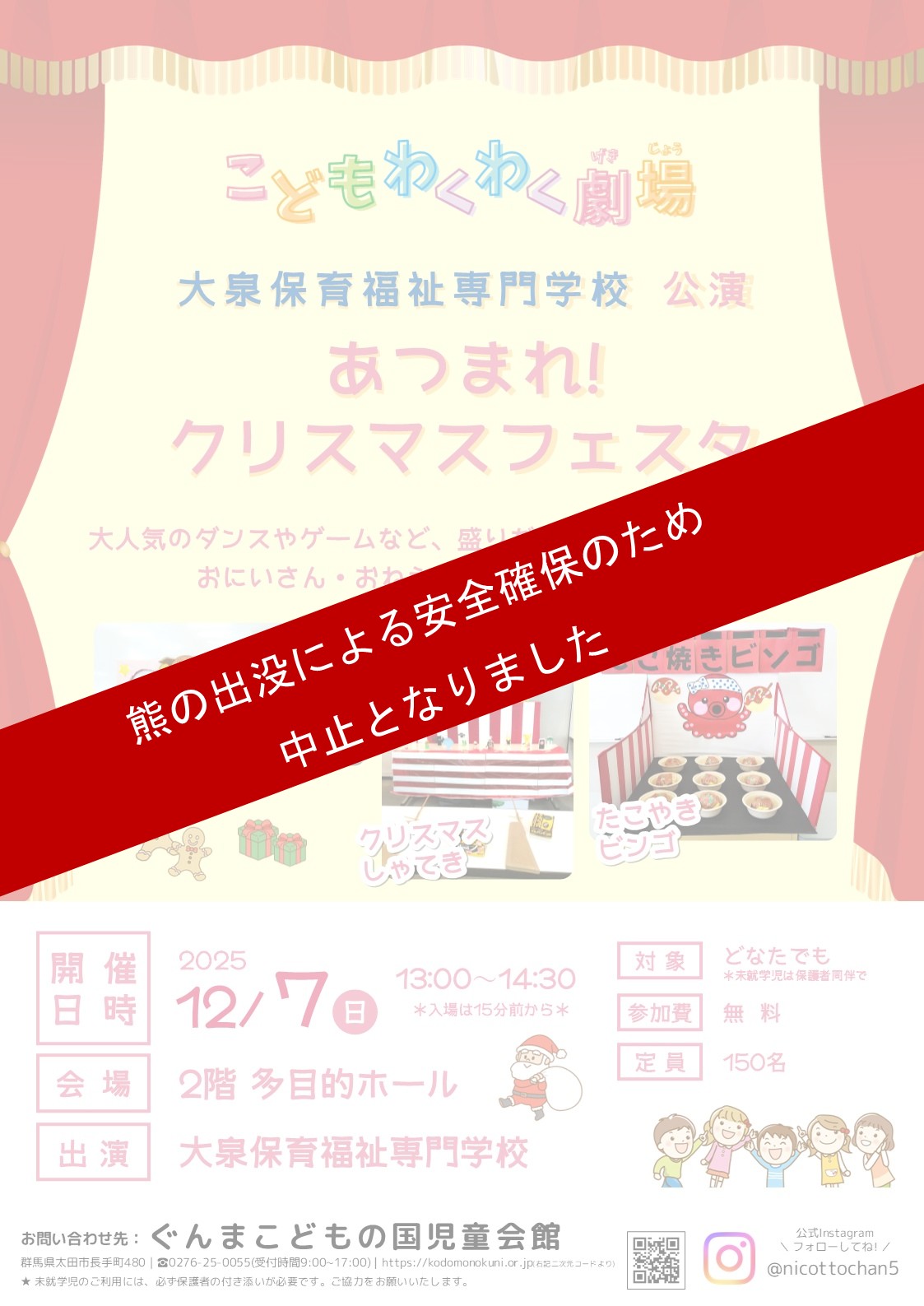 12月7日(日) *中止になりましたこどもわくわく劇場「大泉保育福祉専門学校『あつまれ!クリスマスフェスタ』」 -