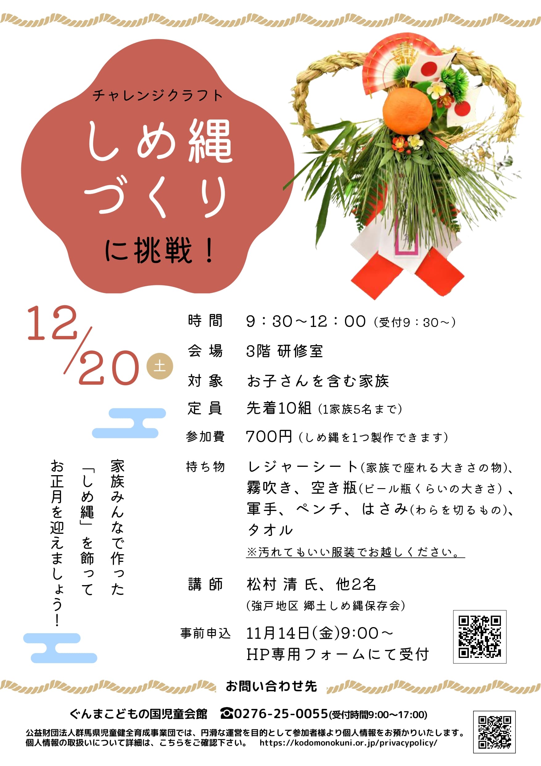 12月20日(土)チャレンジクラフト「しめ縄づくりに挑戦!」 -