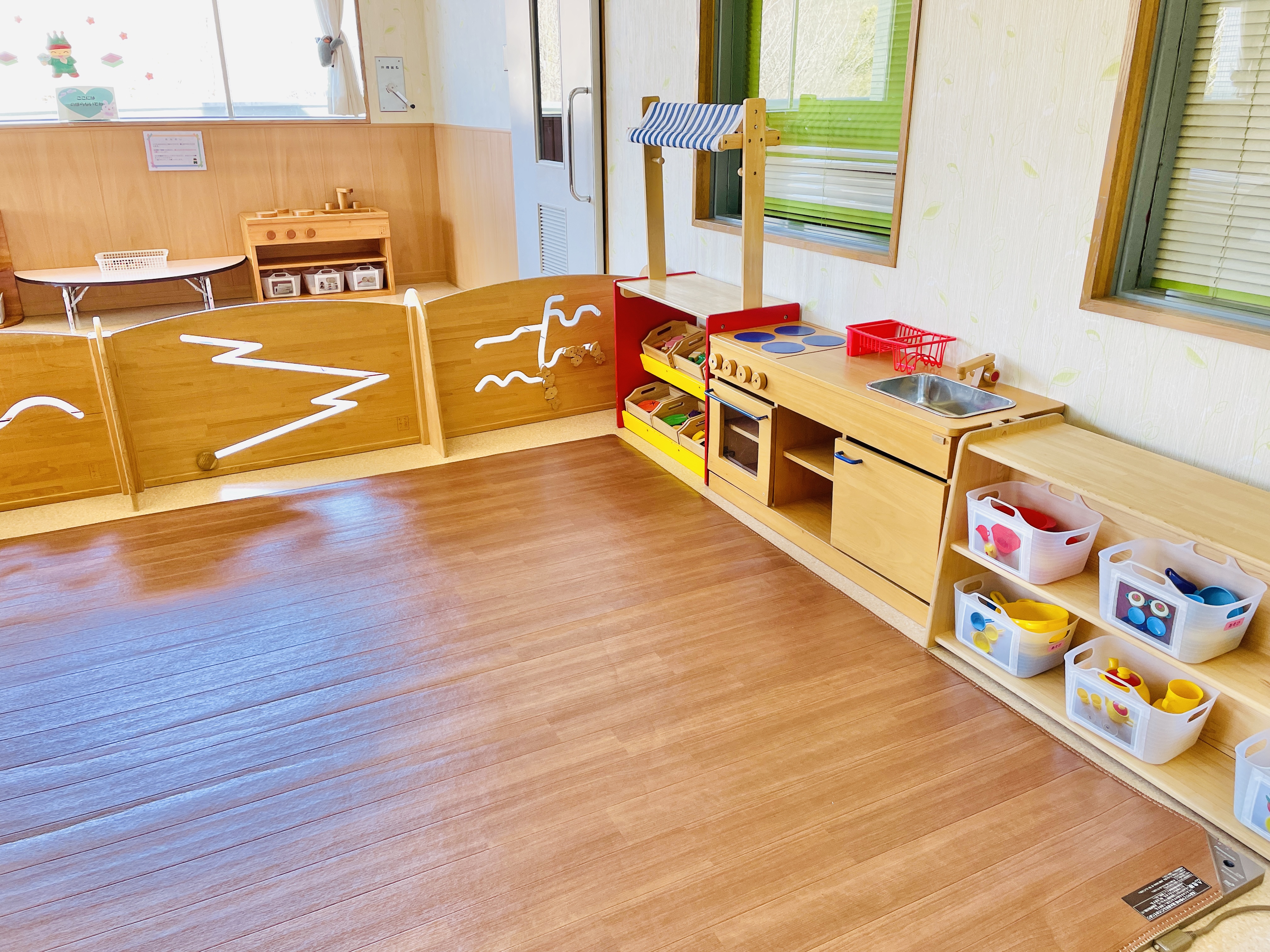 プレイルームでは、群馬県の木でつくられた県産材遊具をはじめ、乳児向けのコーナーやおままごとなどをご用意しております。ぜひご利用ください。